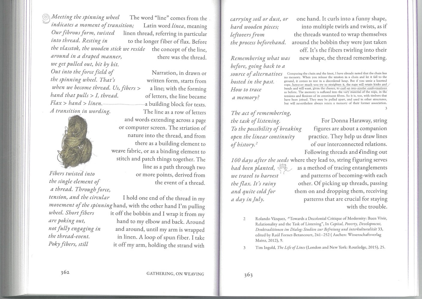 threads we pick up and pass on in our process of becoming? Weaving as a practice, form, and method structures this essay. Fabric is made