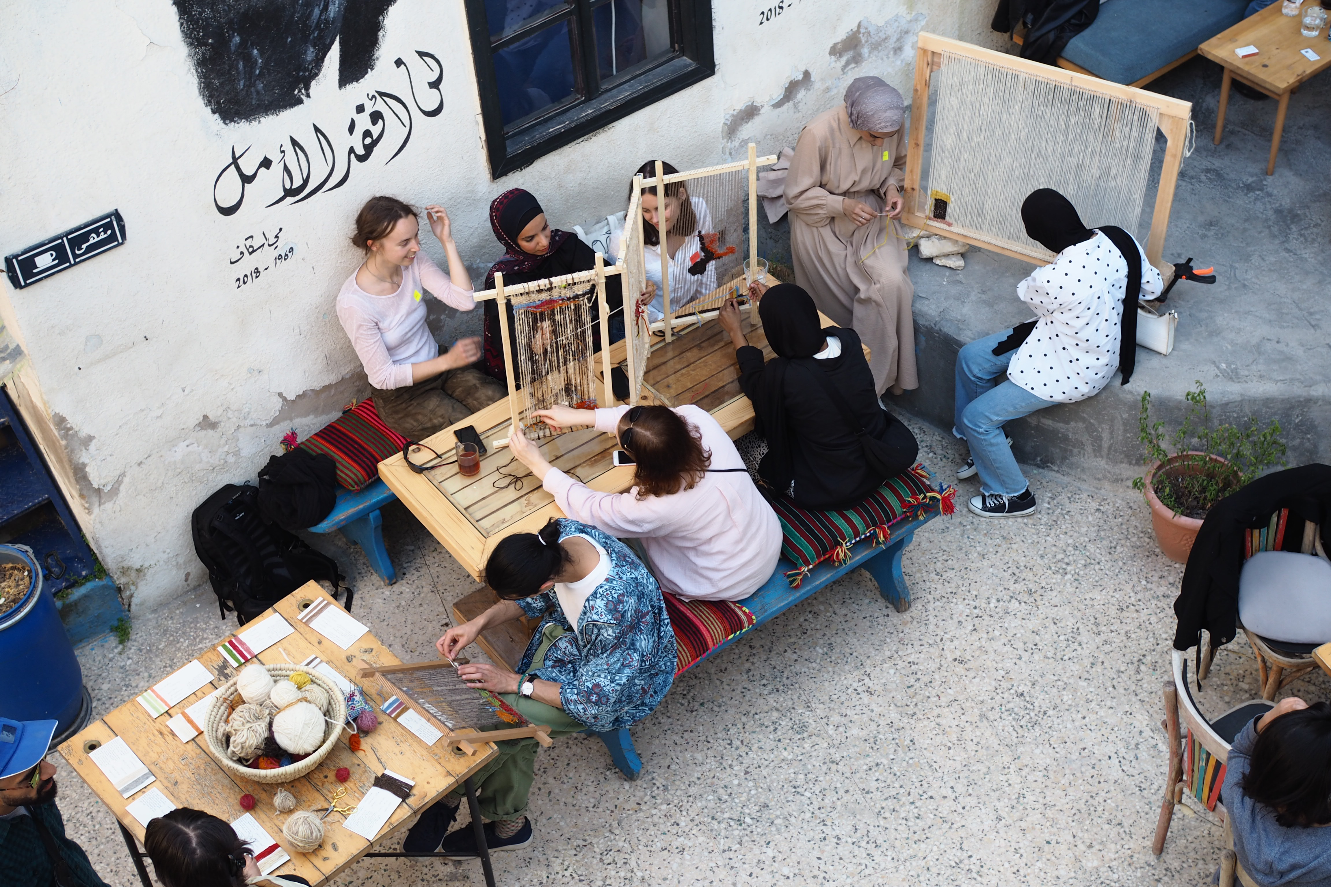 In April 2024 we held a workshop at Jadal space for Culture and Knowledge in Amman, Jordan. Particpiants were invited to learn about different materials from our material library and collectively weave.