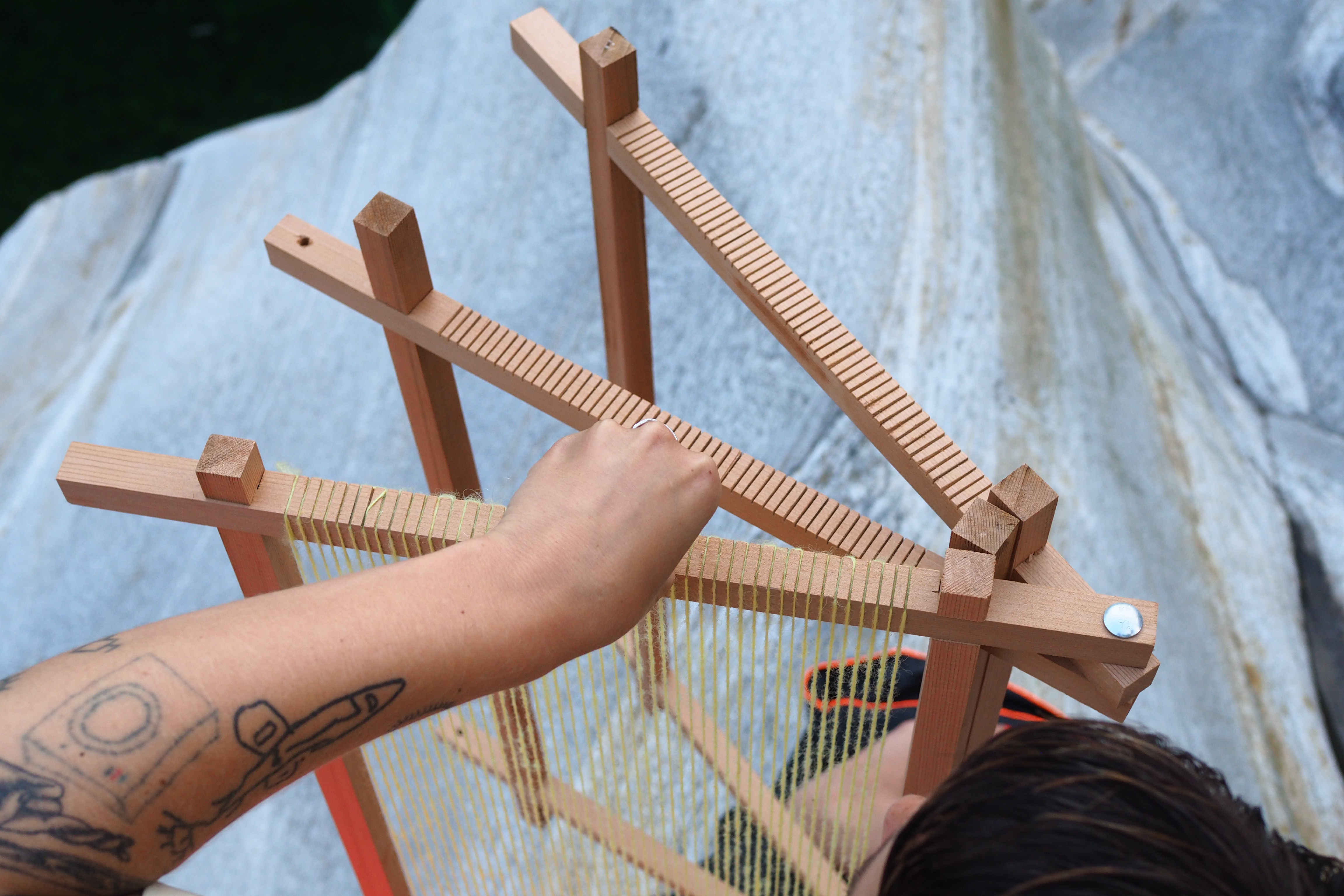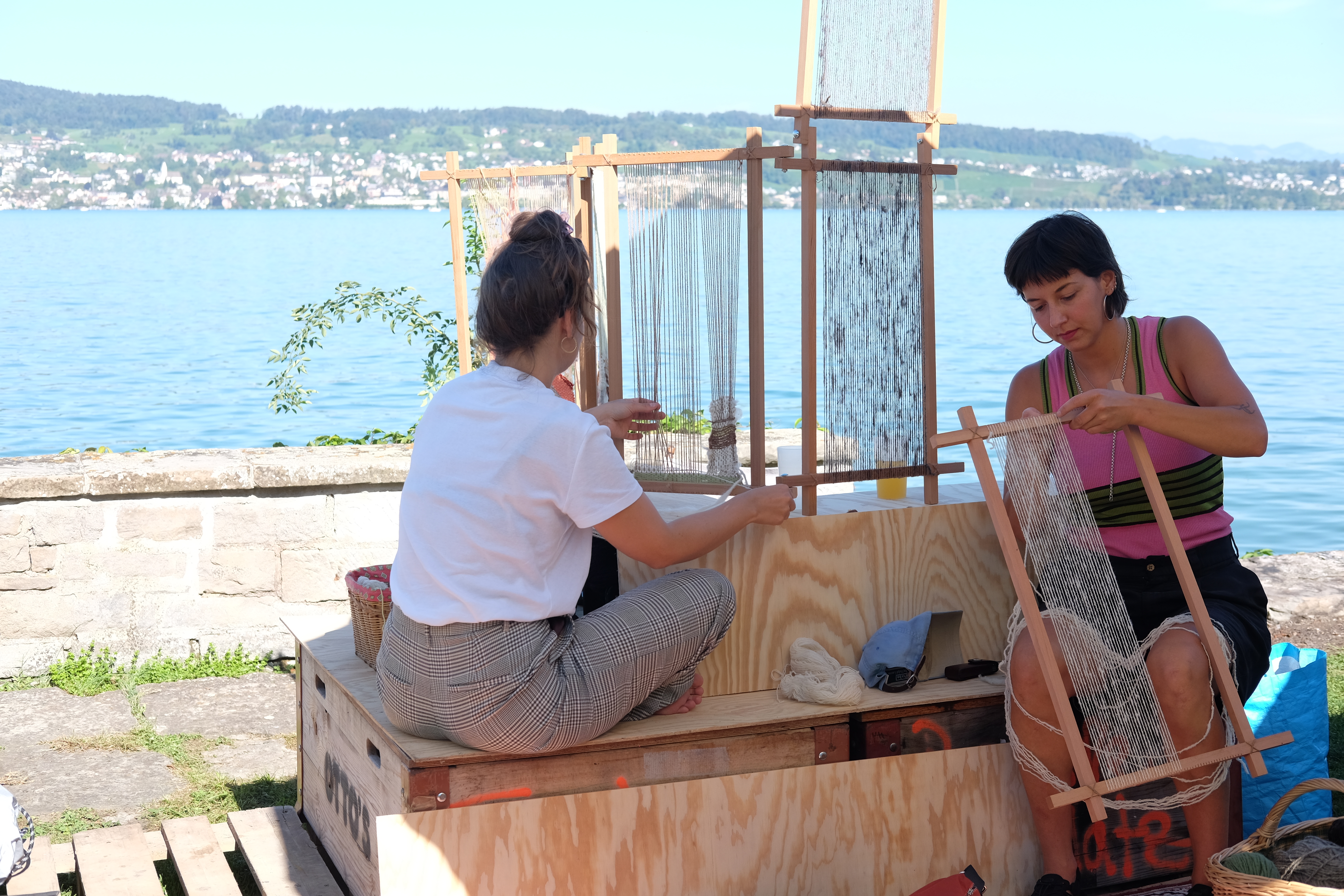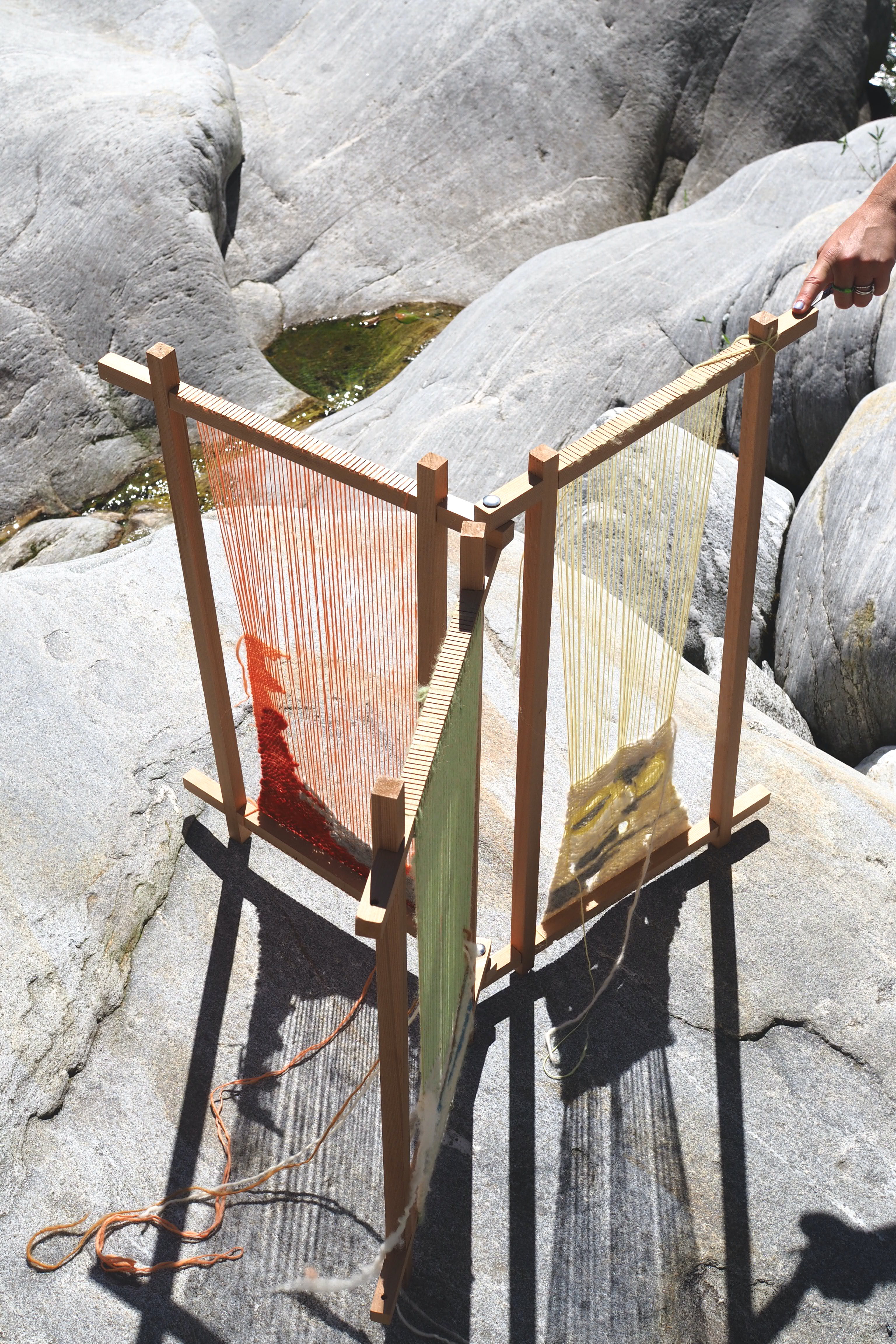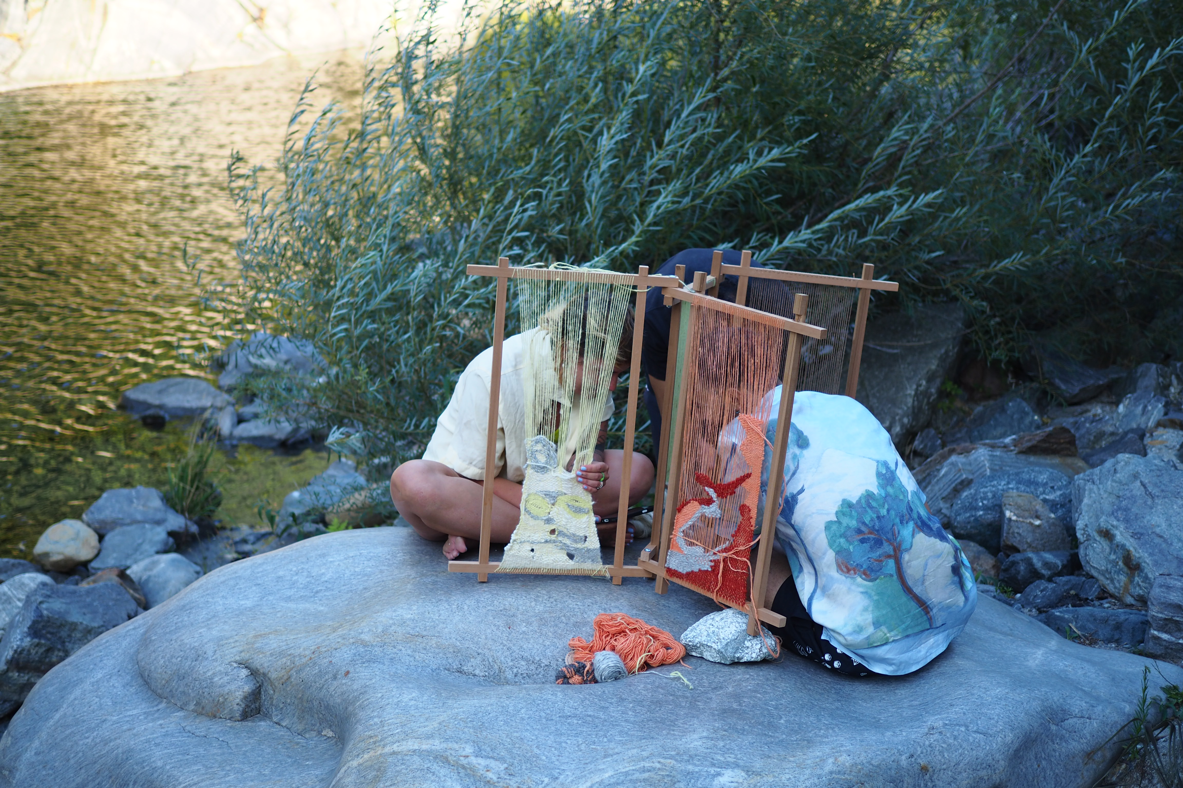 August 2023 marked the beginning of the project “Reimagining Looms: Interweaving (dis)placed ecologies and narratives”, a collaboration between myself and Julina Vanille Bezold. Our endeavor involves a portable weaving loom that accompanies us as we host workshops and gatherings in diverse spaces, using locally-sourced materials. Sparking conversations about belonging, heritage, and (dis)placement, our loom becomes an archive of stories and a facilitator of dialogue. The loom, as our collaborator, harmonizes with local elements, fostering conversations and connections among participants, integrating human and non-human collaborators into the process.